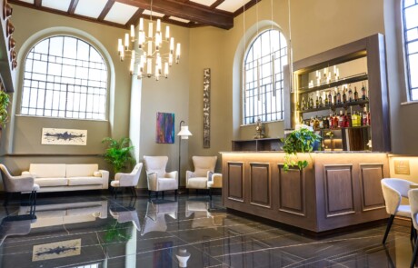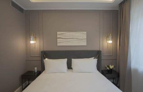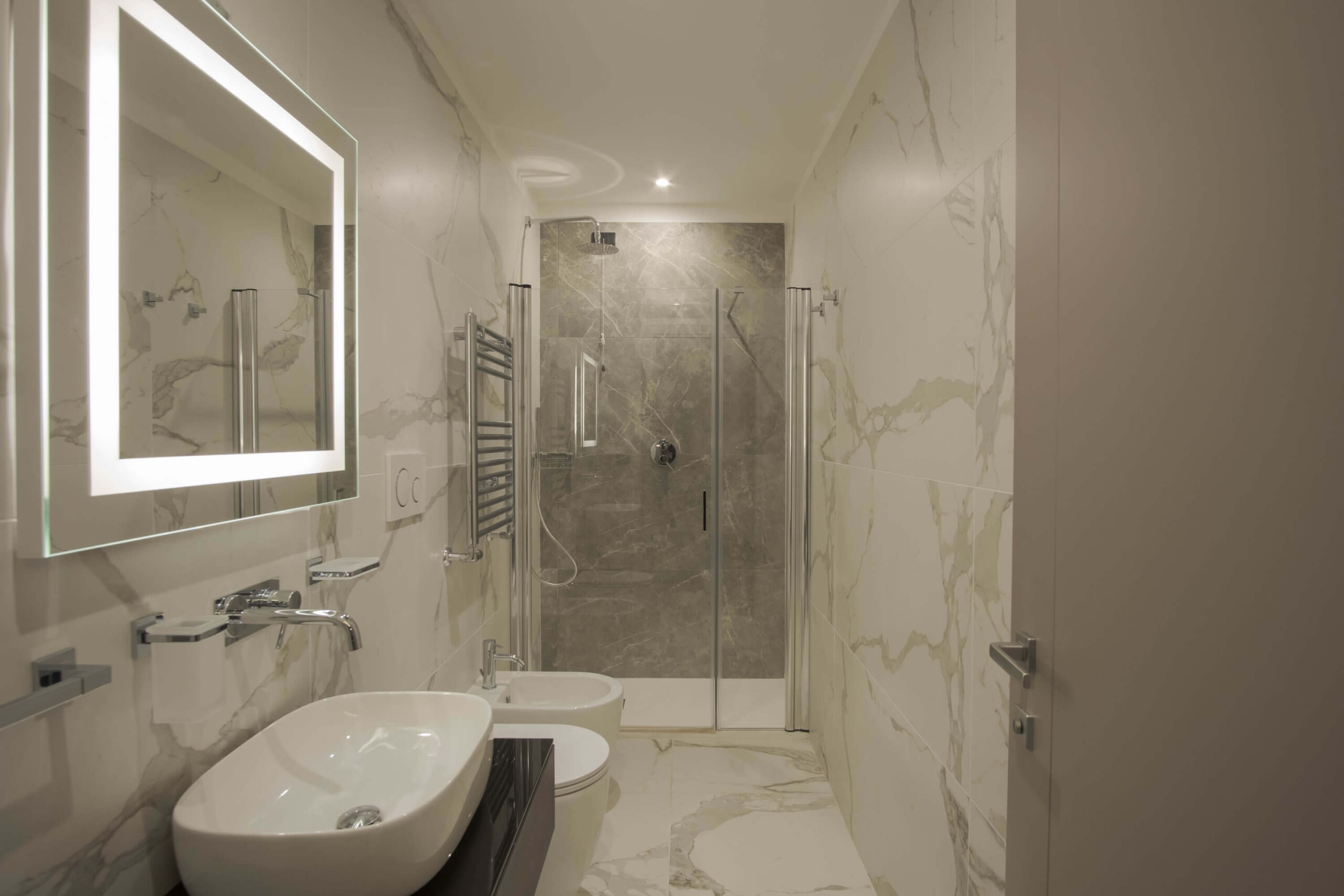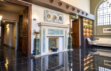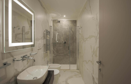 The recently renovated hotel extends over 5 floors and has a total of 43 rooms, for which we have designed special lighting to ensure guests enjoy a stay marked by comfort, refinement and elegance. A large brass and glass chandelier was designed for the hall to enhance the elegant furnishings. In the bathrooms of the rooms we have inserted custom-made illuminated mirrors.