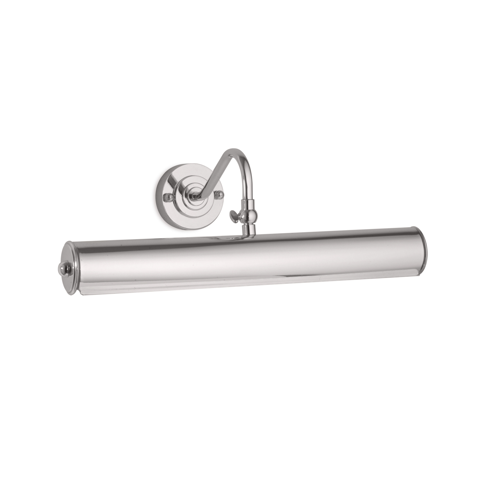Elegante e signorile applique in ottone, con base a parete rotonda, perfetta come lampada per illuminazione quadri per sale da pranzo, corridoi, biblioteche ed uffici. Disponibile anche in finitura nichel lucido, cromo lucido e oro chiaro lucido.
