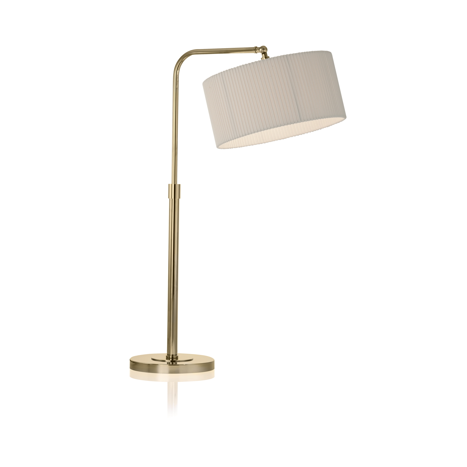 Questo modello di lampada da tavolo con paralume regolabile, rappresenta una soluzione moderna ed elegante per qualsiasi interno. Disponibile in finitura cromo, nichel e oro chiaro.