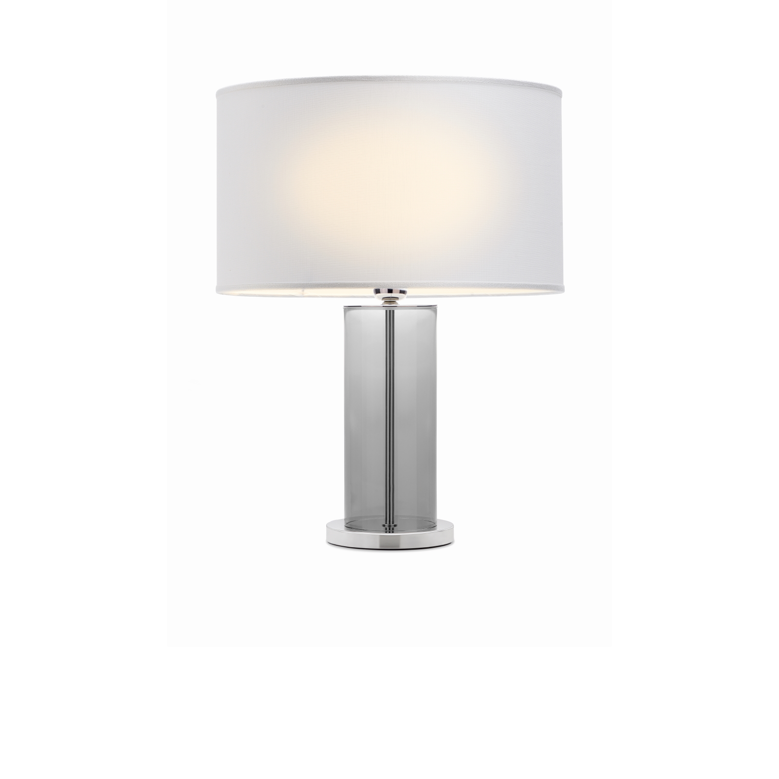 Un complemento d’arredo pregevole in grado di garantire luci d’atmosfera unite a un’estetica moderna e raffinata. Paralume cilindrico in tessuto bianco.