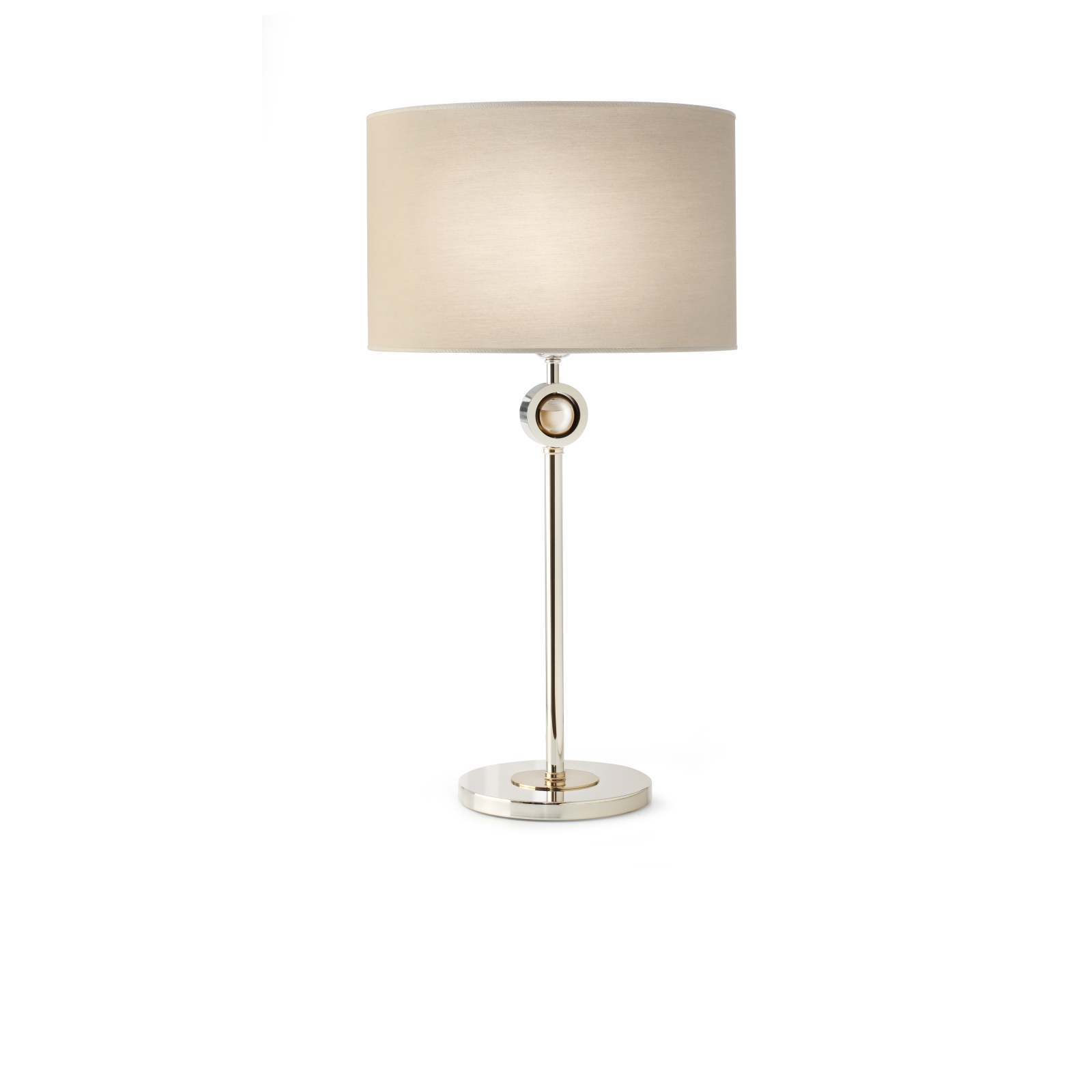 Il modello di lampada da tavolo presenta una finitura in nichel lucido e con particolari nel pregiato oro chiaro.