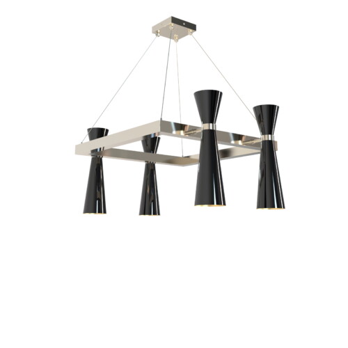Composta da due coni in metallo nella pregevole finitura nichel nero, congiunti e diretti verso direzioni opposte, capaci di donare luce sia nella parte superiore che inferiore. Base rotonda a muro e particolari in finitura oro chiaro. Disponibile anche in altre finiture.