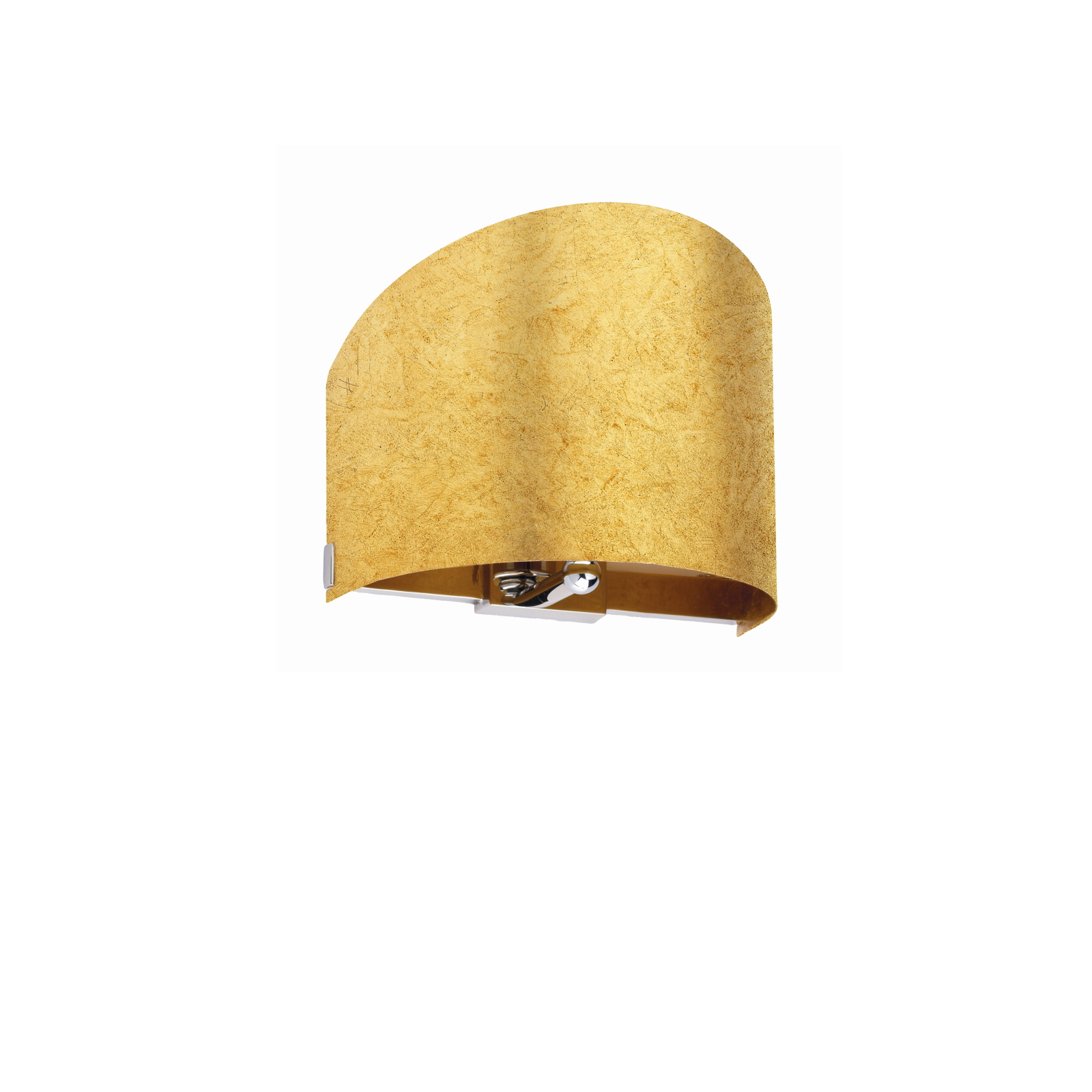 Sprovvista di paralume in tessuto, questa lampada da parete a ventola dall”estetica ricercata, è interamente realizzata in metallo decorato foglia argento.