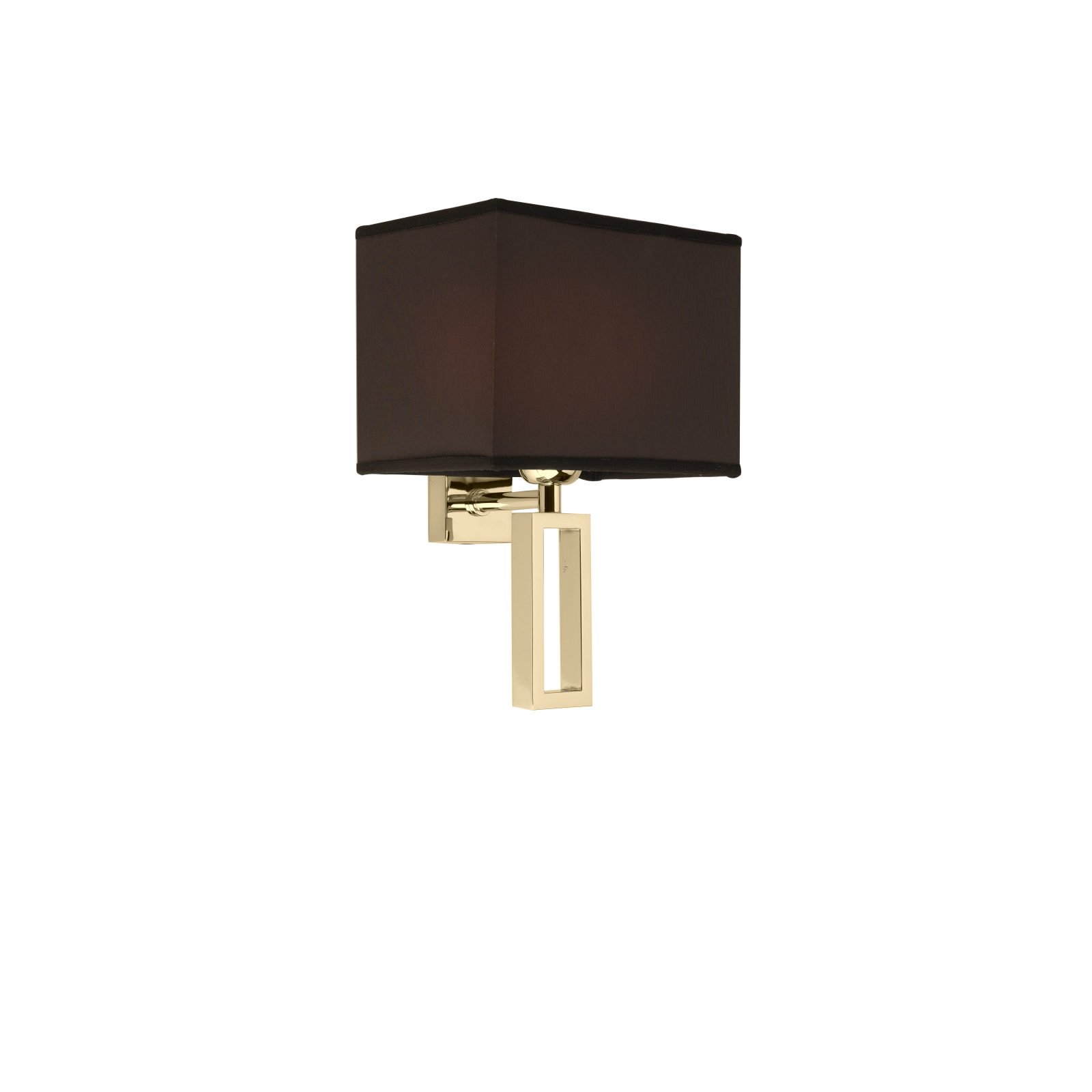 Wall lamp in chromed brass with rectangular lampshade in dark brown fabric.