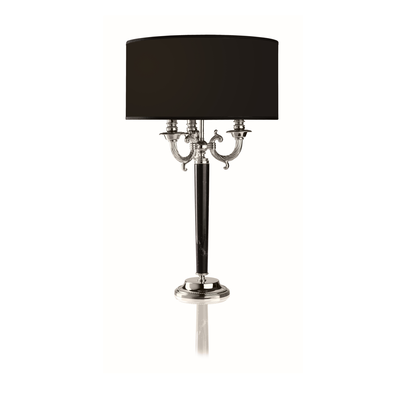 Refined and elegant table lamp with a round base, in a classic and elegant style. With three light points and arms with unique and refined details.