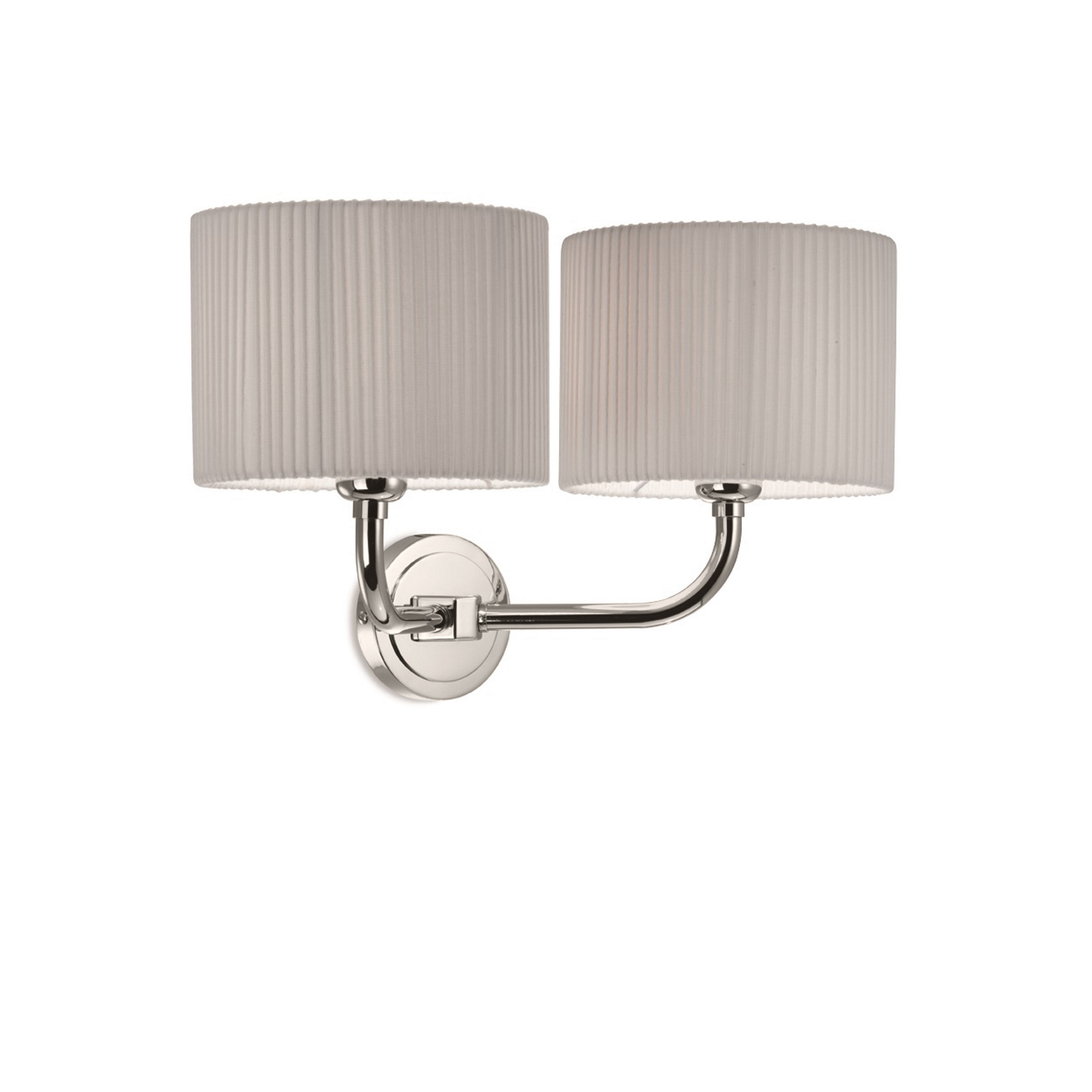This applique model, which extends with two arms from the wall, represents a modern and elegant solution for any interior. Available in chrome, nickel and light gold finishes.