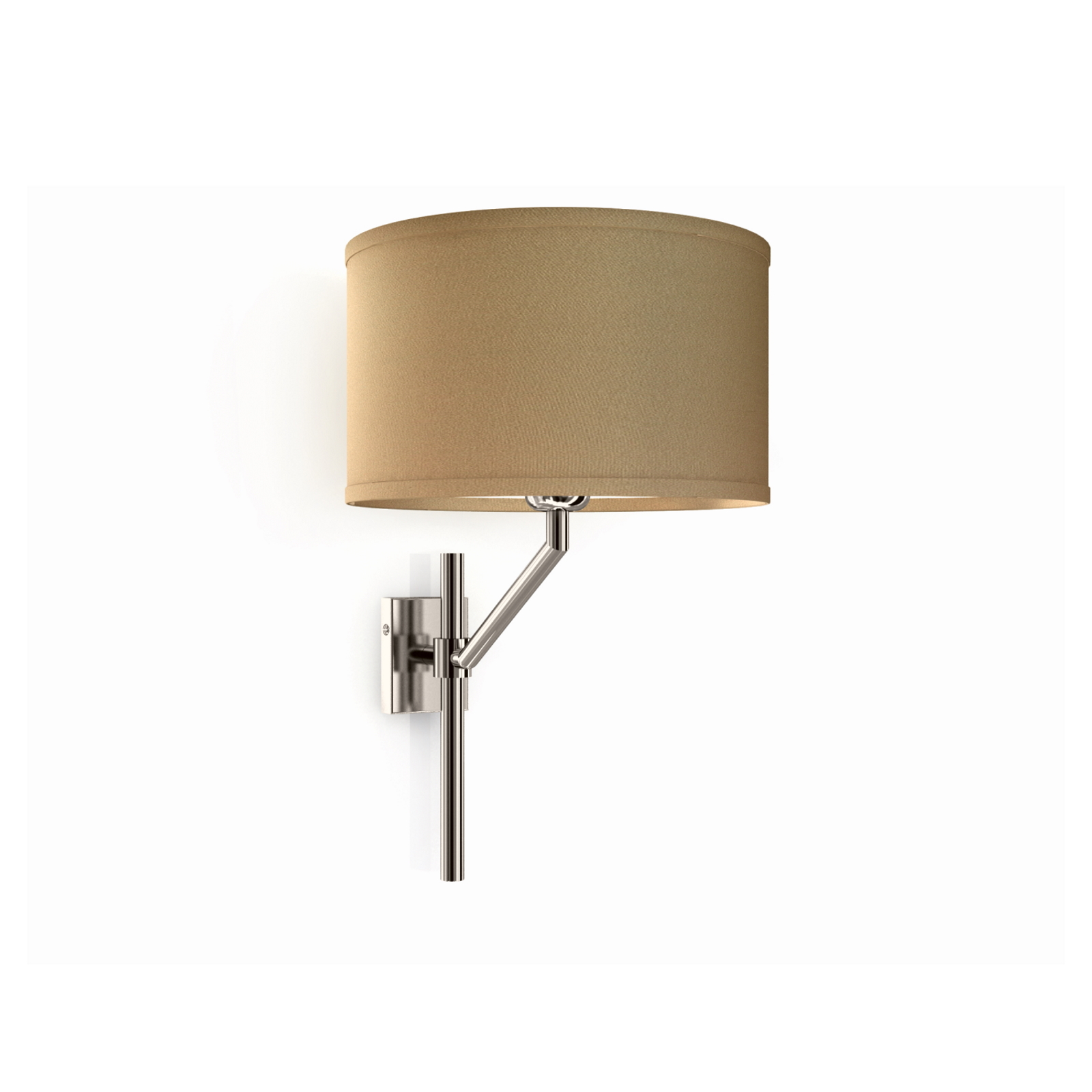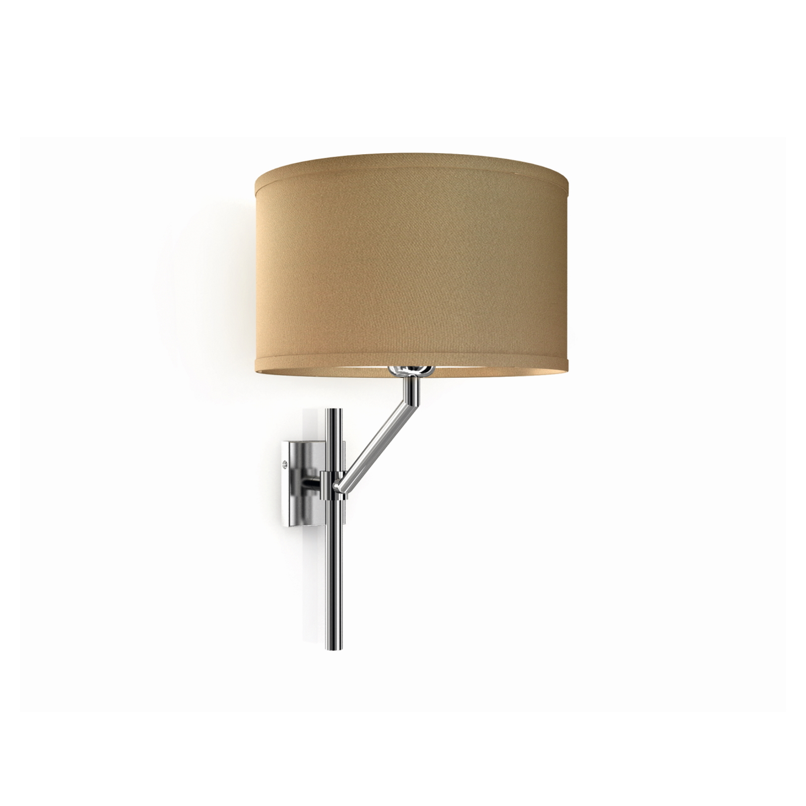 Presented with a cylindrical lampshade in hazelnut colour fabric and a chrome finish structure, this wall light fixture finds its essence in its modern simplicity.