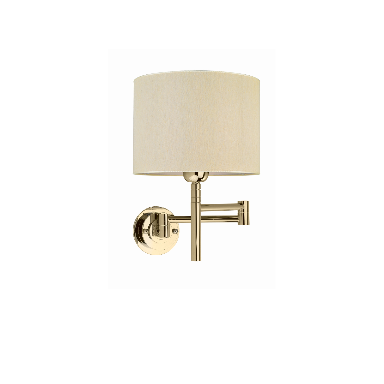 Composed of a round wall base, a structure with a double-jointed adjustable arm with a linear shape and a cylindrical lampshade in ivory fabric, this wall lamp from the Beyring series represents a design item designed with the aim of combining comfort and modernity with interior of rooms, corridors and common areas.