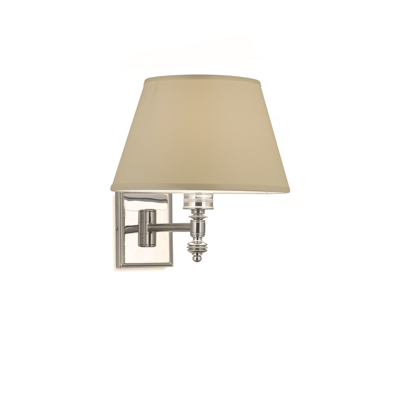 Equipped with brass joint, bright light gold finish and conical lampshade in ivory fabric. Available in different finishes.
