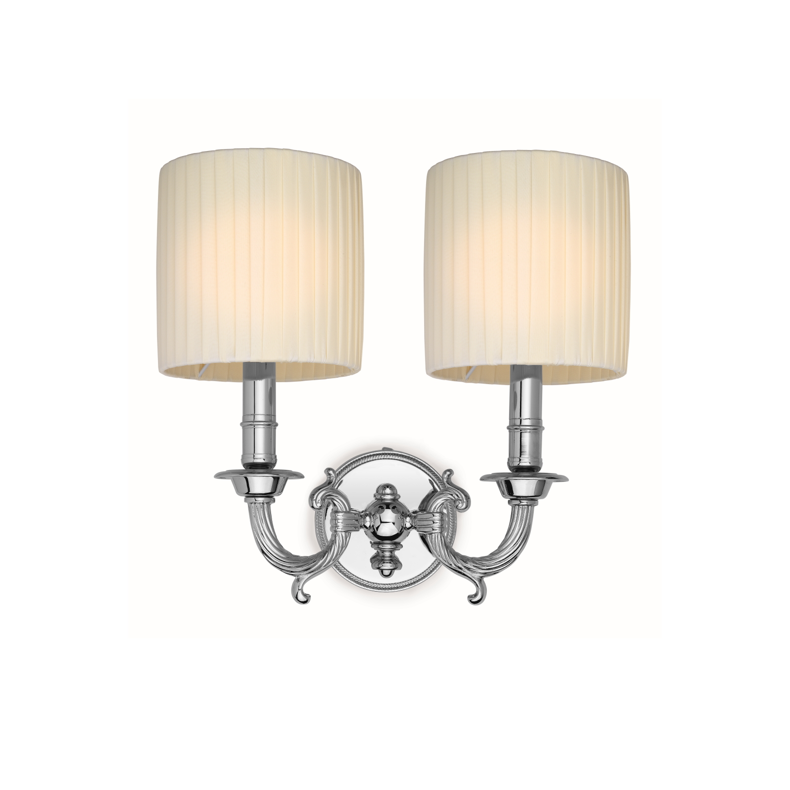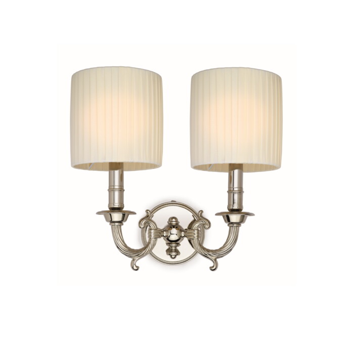 Elegant wall lamp in brass with polished nickel finish, perfect for classic settings.