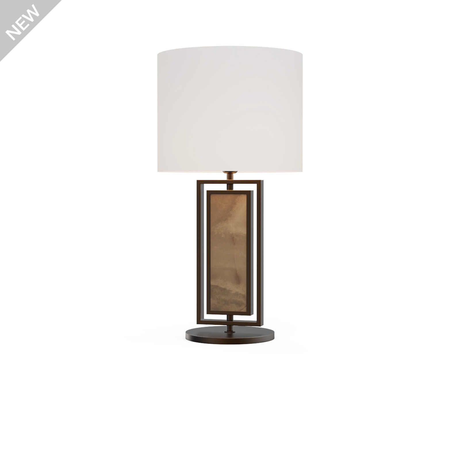 Designed with the aim of combining refinement and aesthetic beauty, these luminous bodies are a perfect match for rooms and common areas with a contemporary design. This table lamp model consists of a rectangular base in bronzed brass with stoneware details.