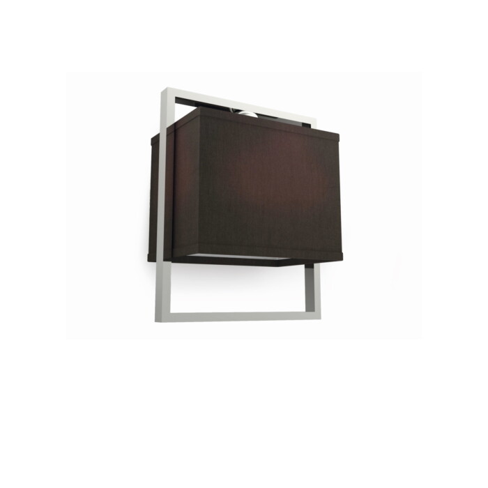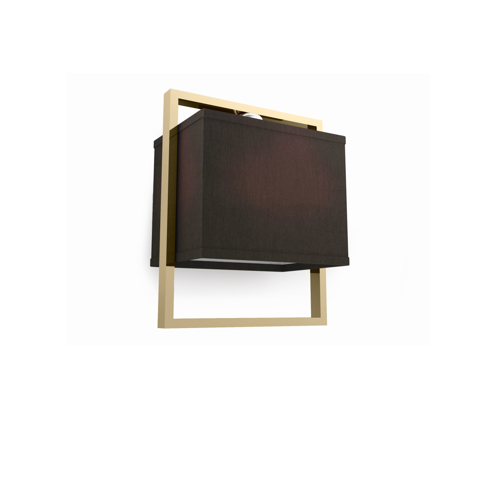 Elegance and refinement perfectly describe Fairfax lamps. A rectangular lampshade in dark brown fabric enclosed in a right-angled structure in chrome-finish brass.