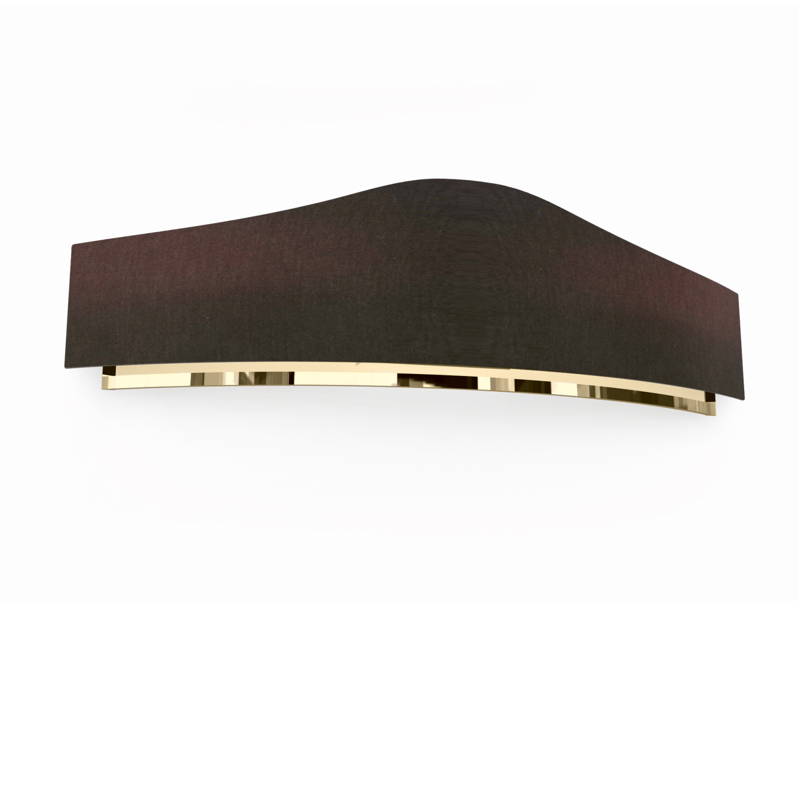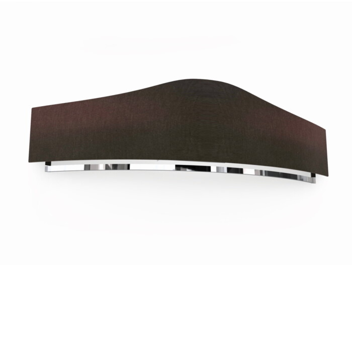 Formed by a curved structure in chrome finish brass, and a dark brown fabric lampshade with a unique and fascinating shape. Available in various colors.