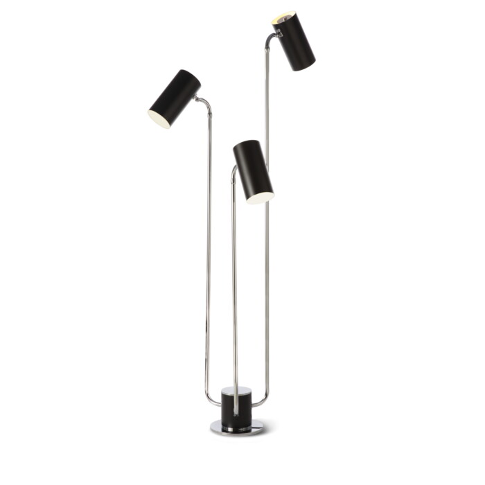 With a strong aesthetic sense, this floor lamp with three arms and three light points comes with a two-tone painted metal lampshade. Available in various colors.