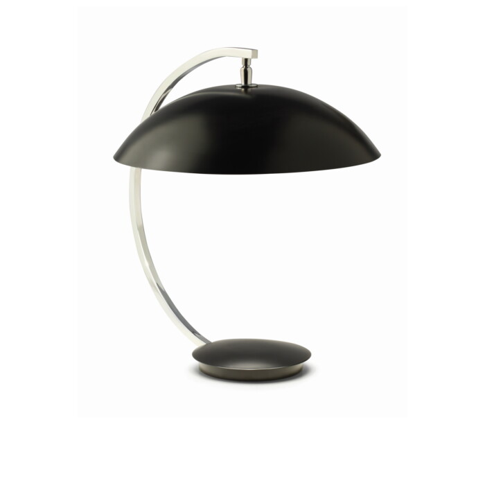 With a chrome finish metal structure, painted details and two-tone painted metal cap (black outside and white inside) this round base table model is an excellent match for tables, desks, halls and common areas.
