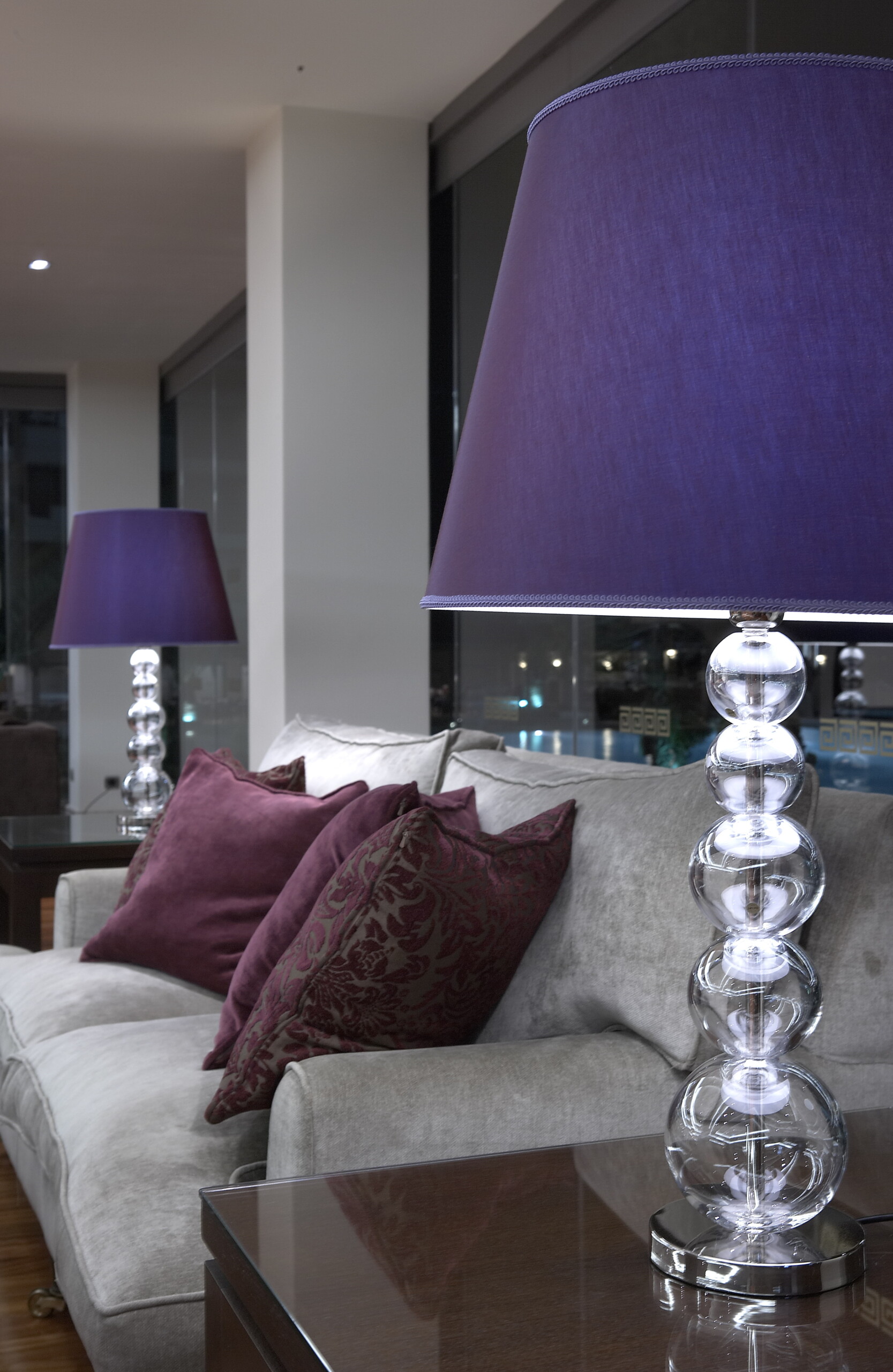 Table lamp with a modern design suitable for creating welcoming and refined atmospheres for rooms and common areas.
