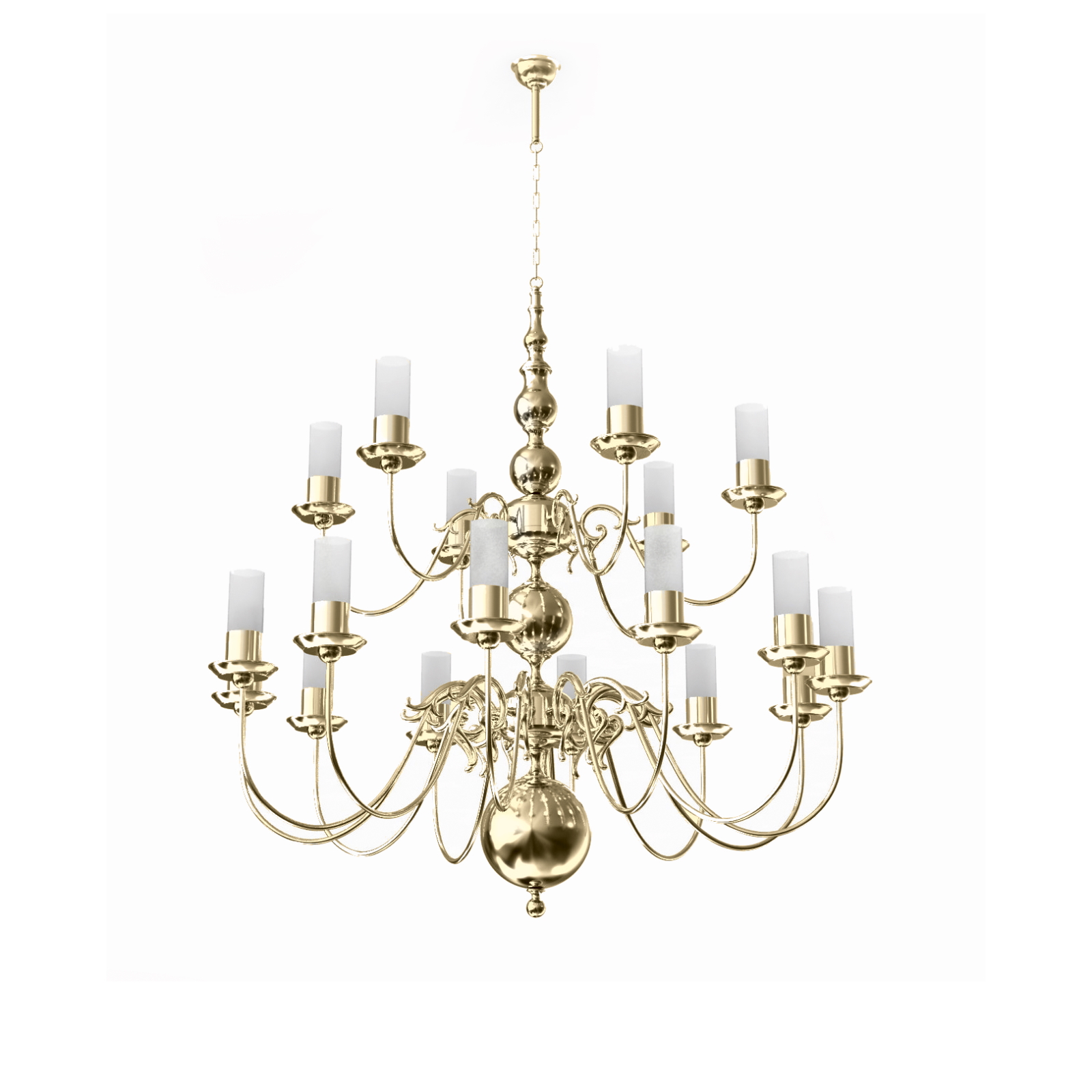 This particular model comes with 18 light points, a polished nickel finish brass structure and glass diffusers. Available in various finishes.