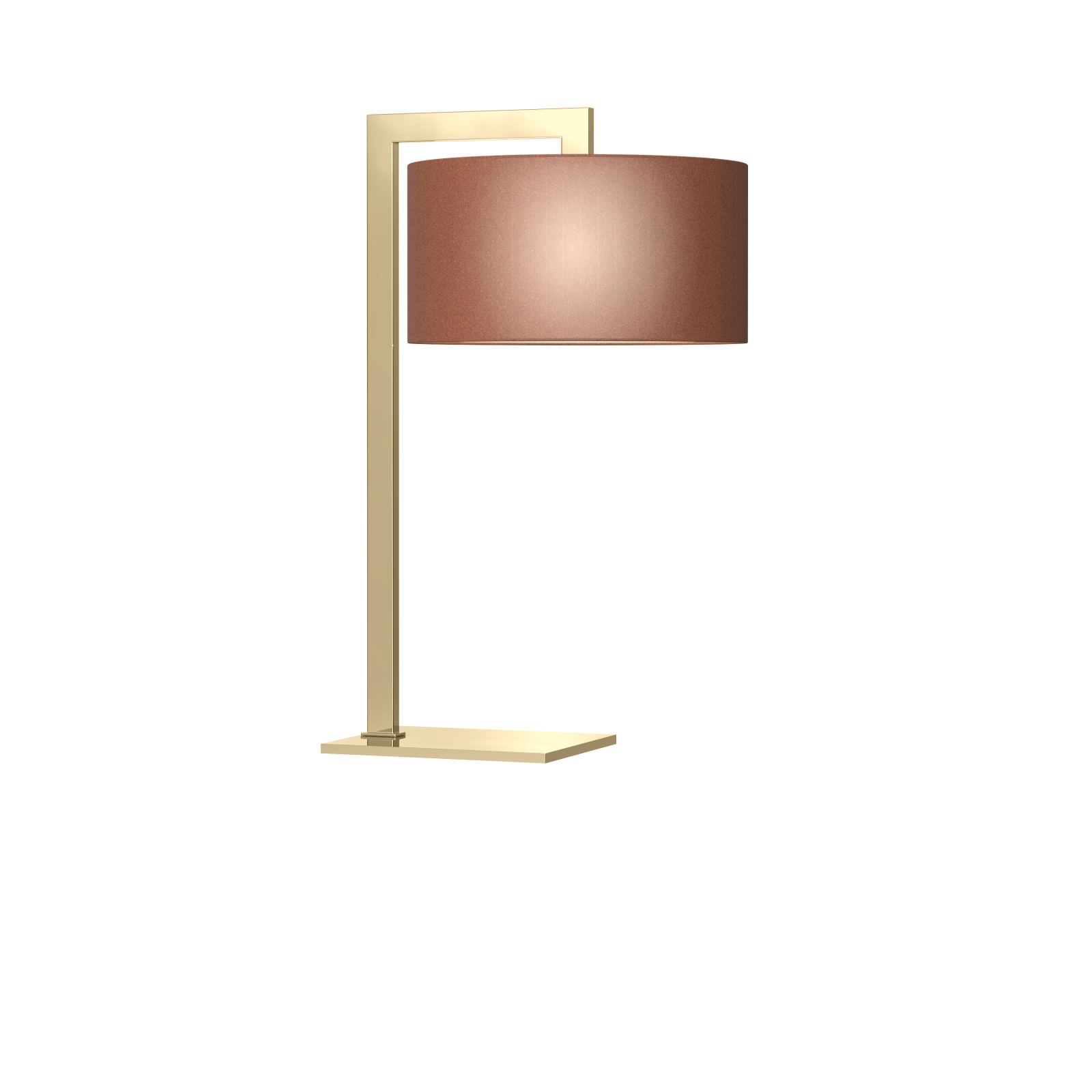 Consisting of a structure and a base in brass with a polished nickel finish and a cylindrical lampshade in smooth brown fabric. Available in various colors and finishes.