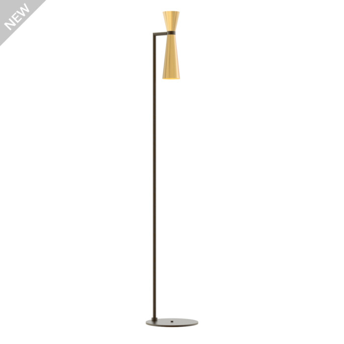 Elegant floor lamp with an innovative and modern design, designed for the bedrooms and common areas. The floor lamp consists of a round base and a linear structure made in bronze finish.