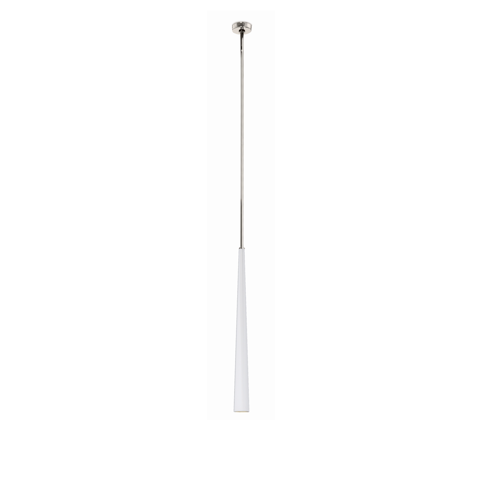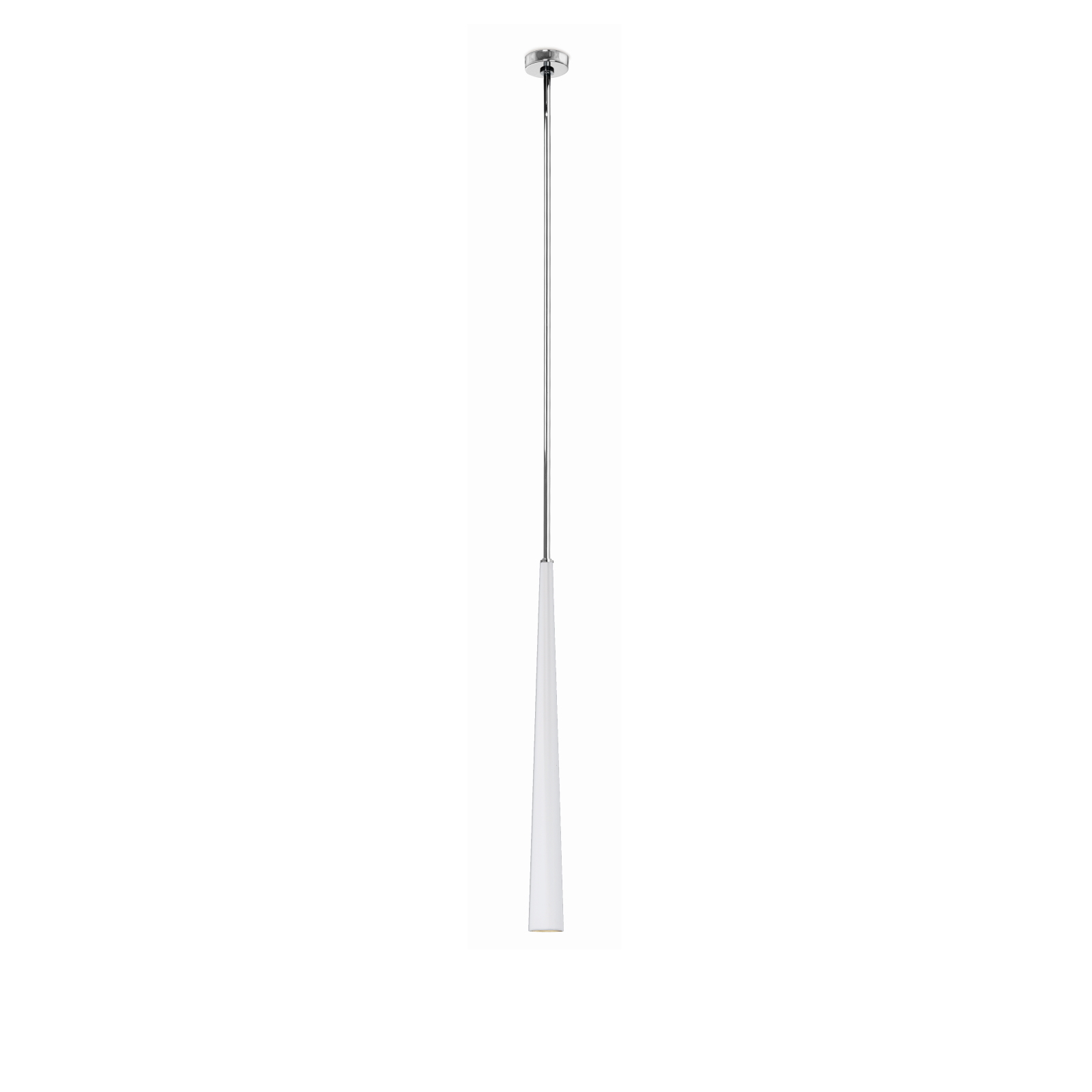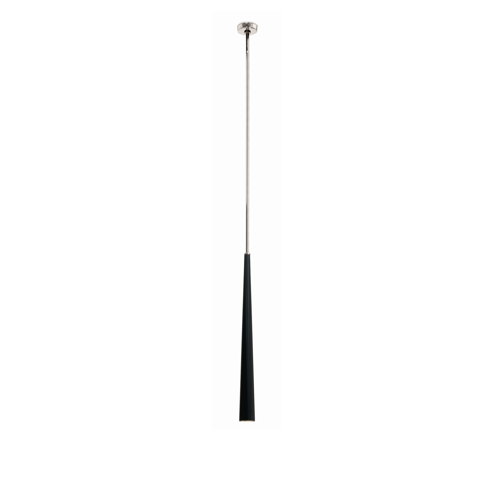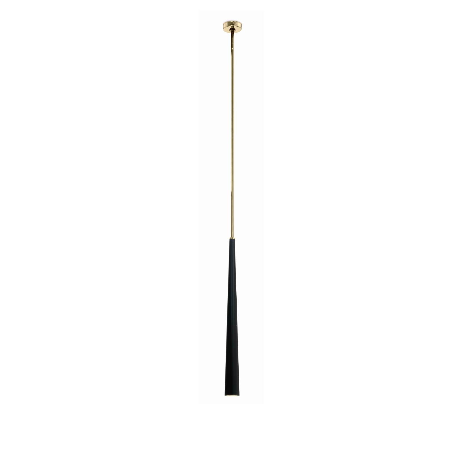 A vertical structure with an extremely elongated conical shape distinguishes this elegant ceiling lamp.